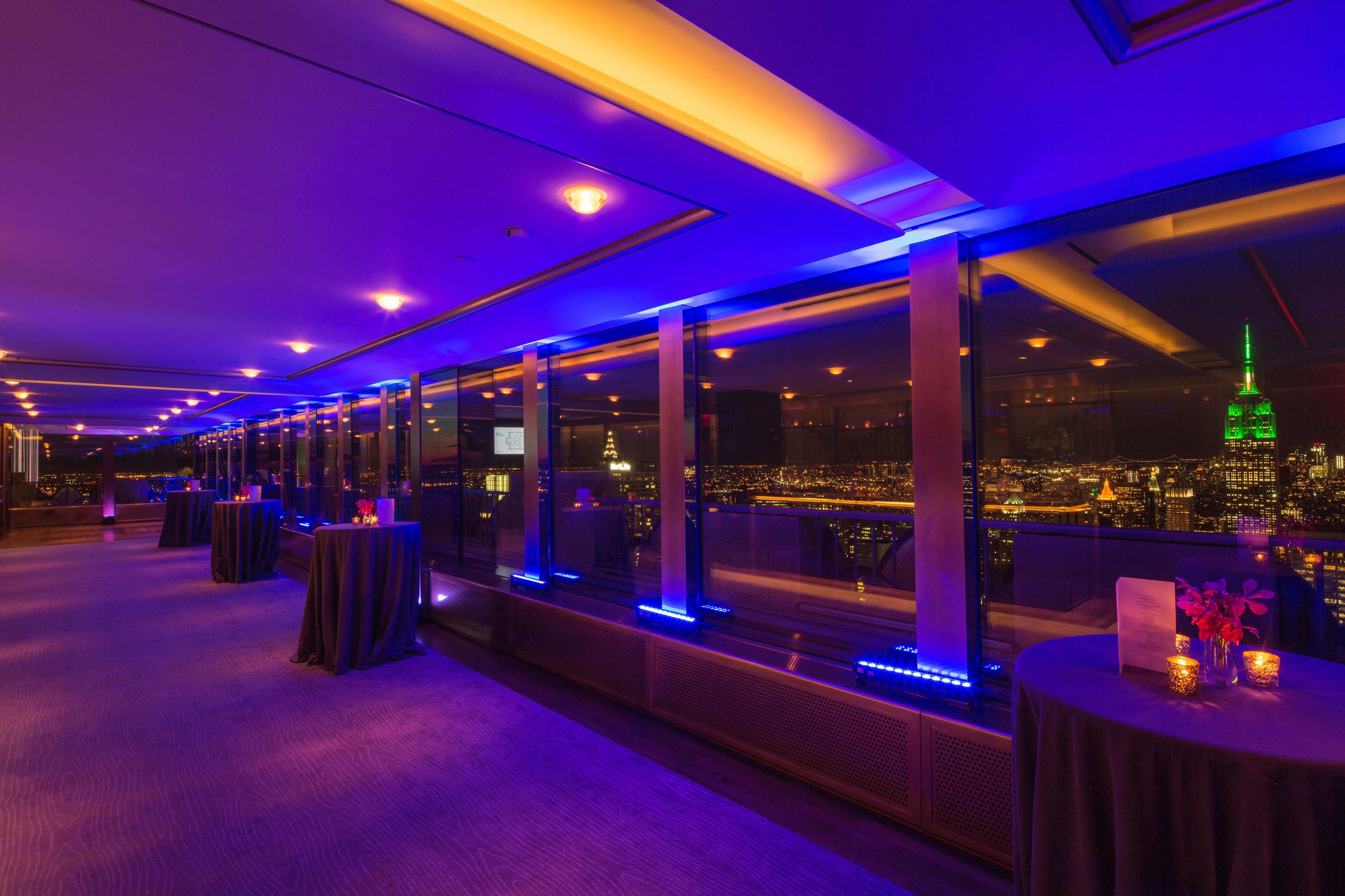 Adjacent to the Rainbow Room, The Gallery is an intimate event space with stunning south-facing views of Manhattan and the Empire State Building. Perfect for cocktail receptions, private dinners, or pre-event gatherings, this elegant setting offers a warm, sophisticated atmosphere high above the city.